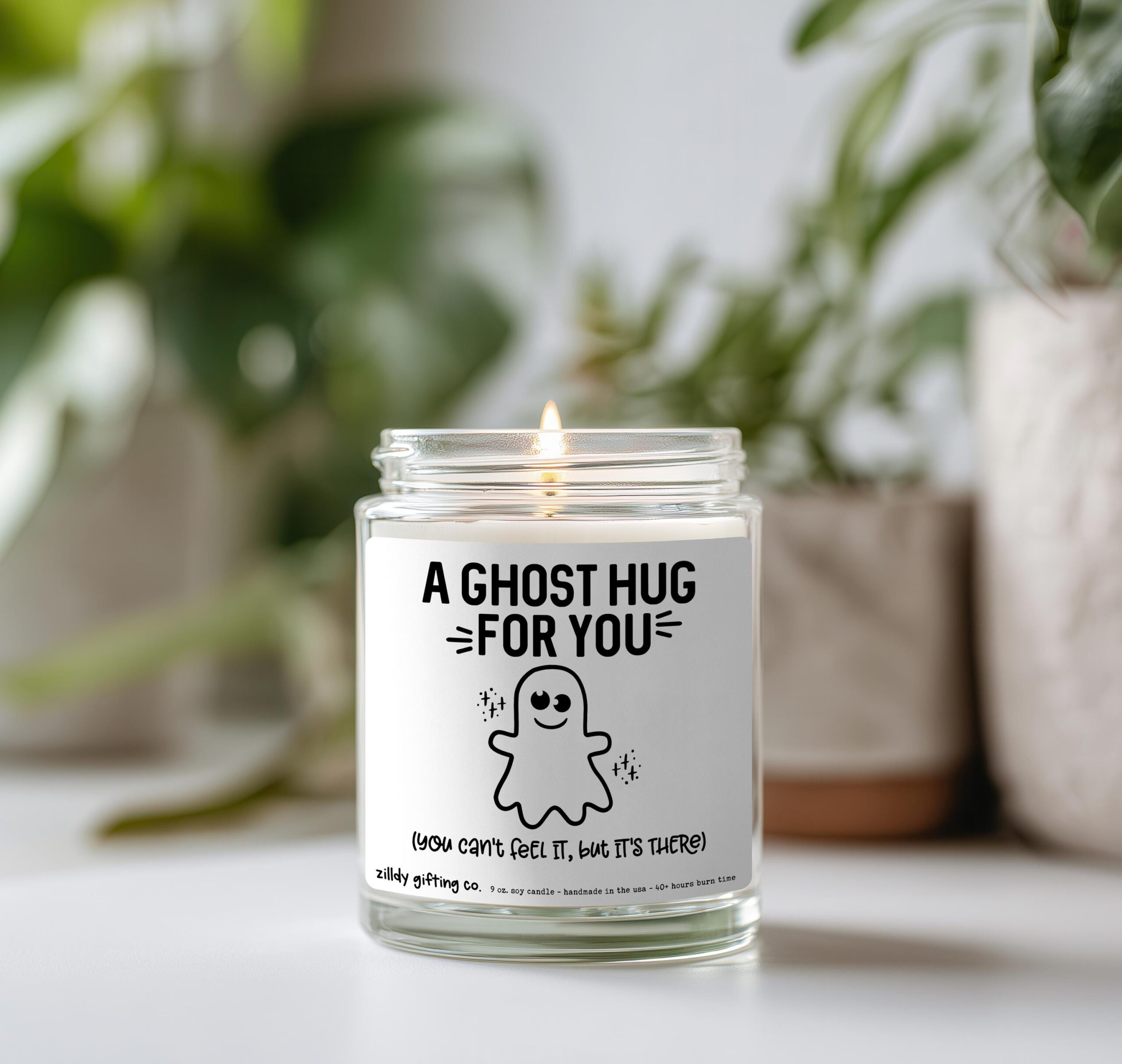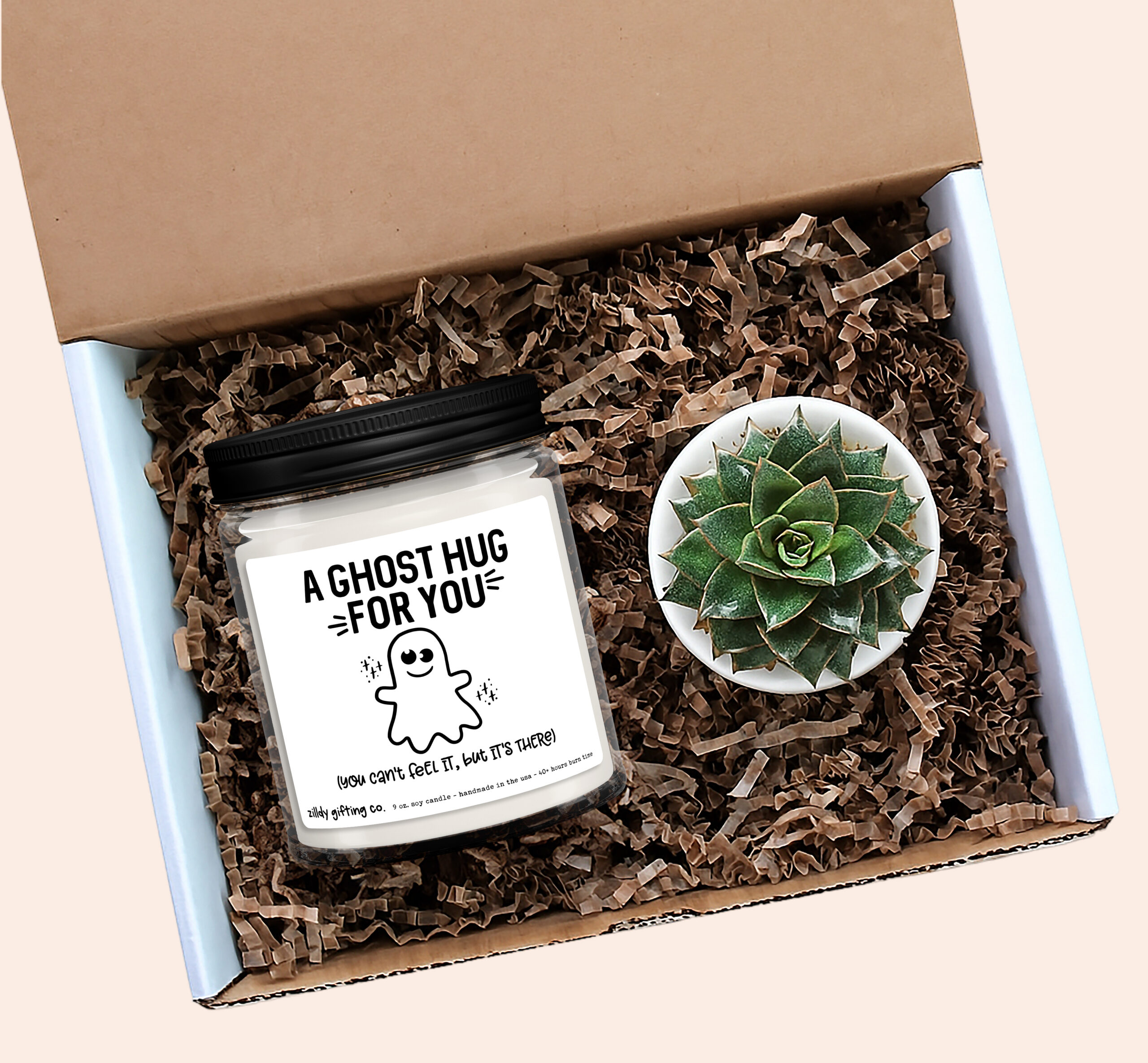 This candle says what we all need sometimes: “A ghost hug for you (you can’t feel it, but it’s there).” Hand-poured with love, this 9 oz soy candle burns clean for 40+ hours, long enough to remind someone special that they’re never truly alone. You can also add extras like a bath bomb, sugar scrub, or sweet treats to really lift their spirits (pun intended). A comforting gift for long-distance friends, grief support, or anyone who needs a little emotional pick-me-up.