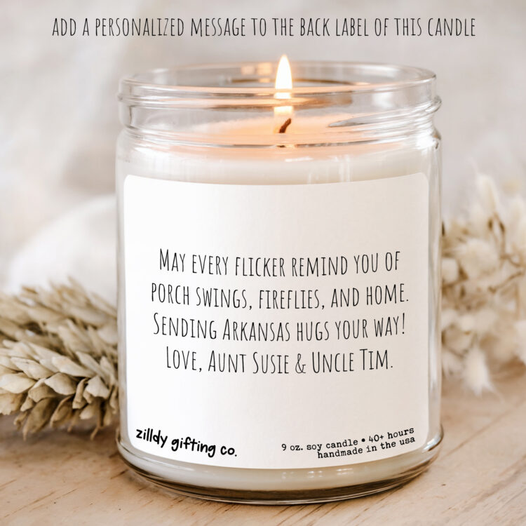 Bring a little slice of Arkansas home with this beautifully handcrafted soy candle. Featuring a charming black and white Arkansas state design on a crisp white label, this candle is the perfect way to celebrate your home state, commemorate a special trip, or send a piece of the Natural State to someone you love. Hand-poured in the USA with premium soy wax, this candle burns clean for up to 40 hours, filling your space with cozy, long-lasting fragrance. It’s a thoughtful gift for birthdays, housewarmings, or simply because—after all, there’s no place like home.
