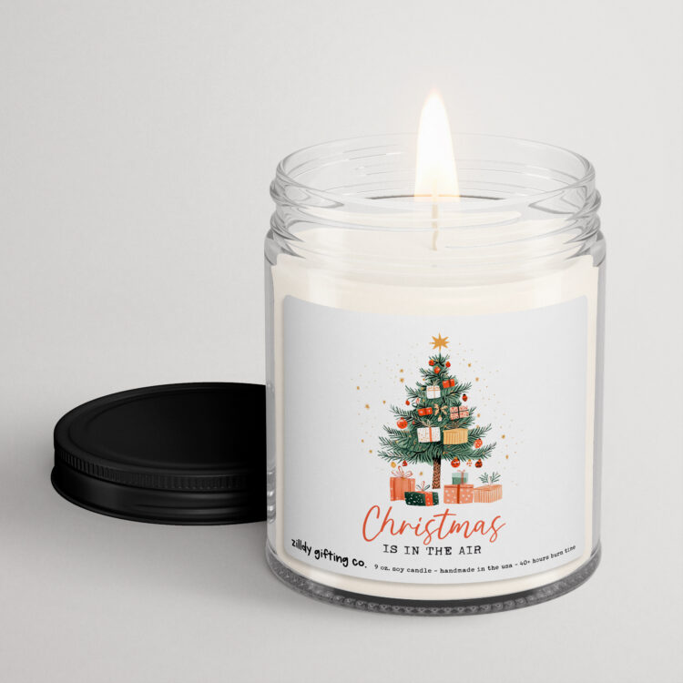 Celebrate the festive season with our Handmade Scented Soy Candle, featuring a beautifully decorated Christmas tree and the joyful message, “Christmas Is In The Air.” This candle is perfect for creating that warm, cozy holiday ambiance in your home, or as a thoughtful gift for loved ones. With its clean-burning soy wax and fragrance of your choice, it’s the perfect way to set the mood for the holidays.