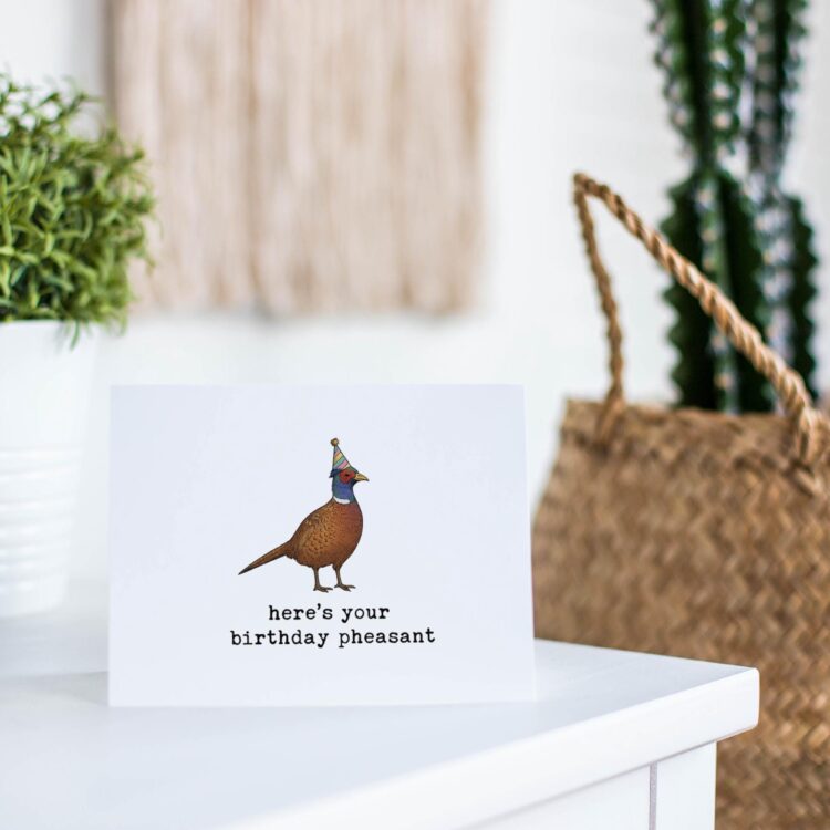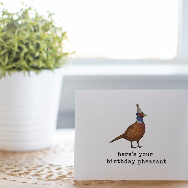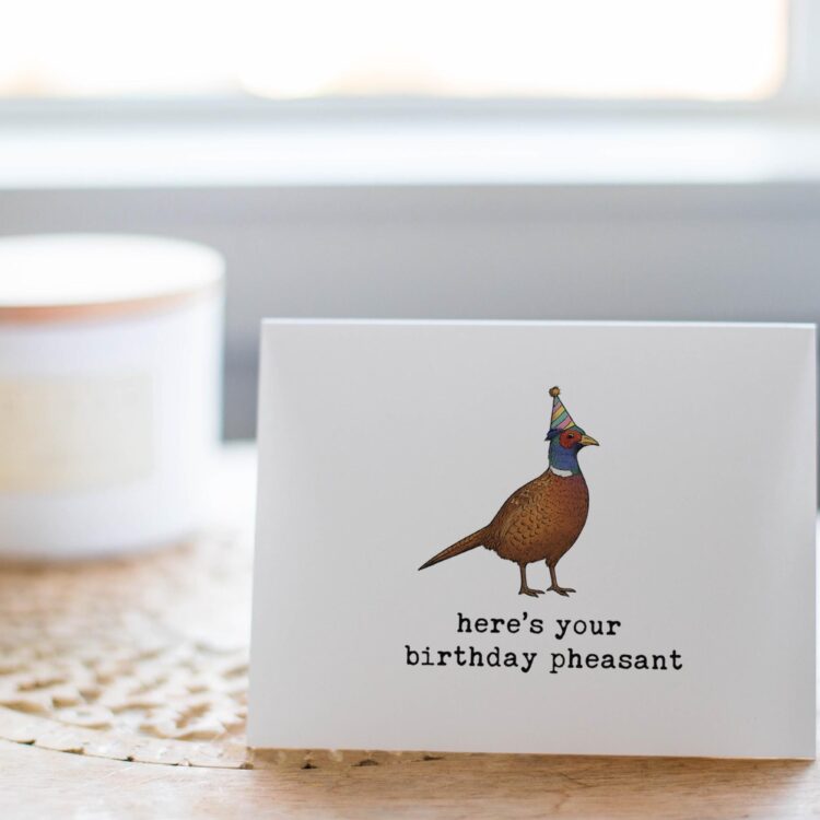 Brighten someone’s birthday with a playful card featuring a charming pheasant illustration that blends pun design and animal humor perfectly. Whether you’re shopping for a hunter sportsman or a nature lover, this funny bird card delivers a cheerful and clever message that stands out. Handmade with care, it’s an ideal way to share birthday laughs with friends, family, or coworkers.
