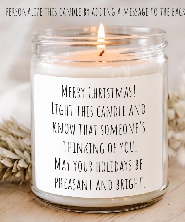 Each candle burns cleanly for 40+ hours and can be personalized with your own message on the back label. Optional add-ons like a bath bomb or sugar scrub make this the perfect Christmas treat for someone special.