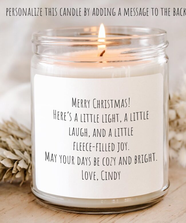 Warm their heart (and make them laugh) with our “Fleece Navidad” Personalized Handmade Soy Candle Gift Box. Each candle is handcrafted in small batches with 100% natural soy wax for a clean, long-lasting burn. You can even personalize the back label with your own message to make it extra special. Add optional self-care extras like a bath bomb or sugar scrub to complete the perfect cozy holiday gift.