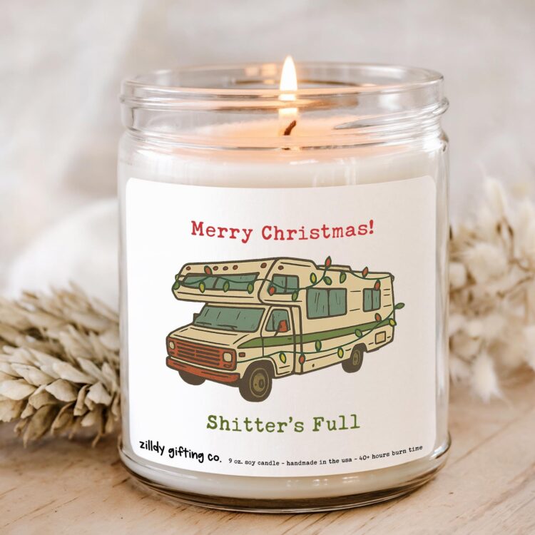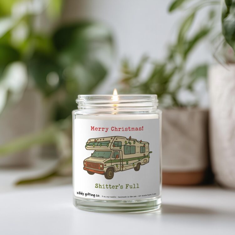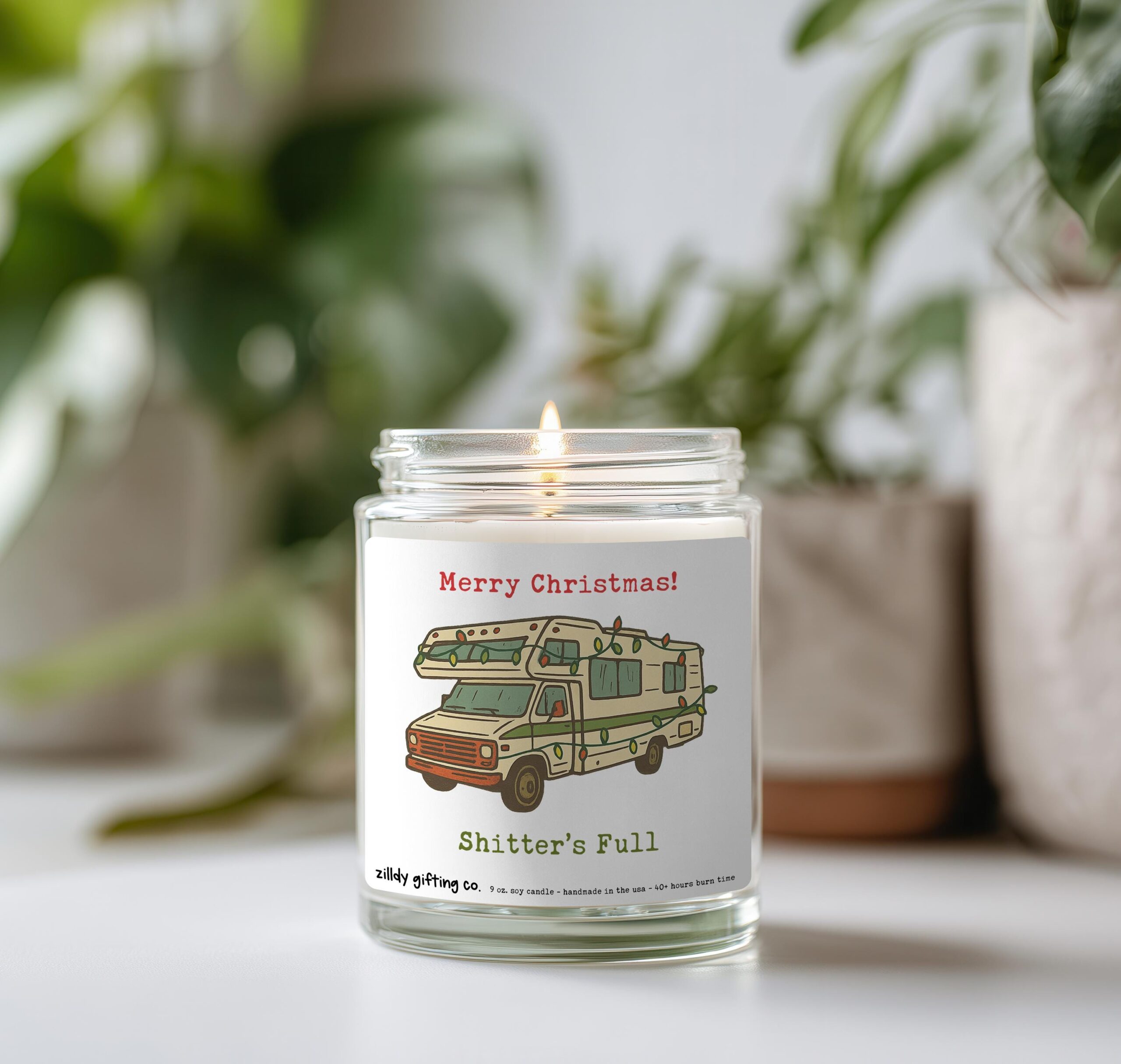 Funny Gift – "Merry Christmas Shitter’s Full" – Personalized Soy Candle Succulent & Cookies