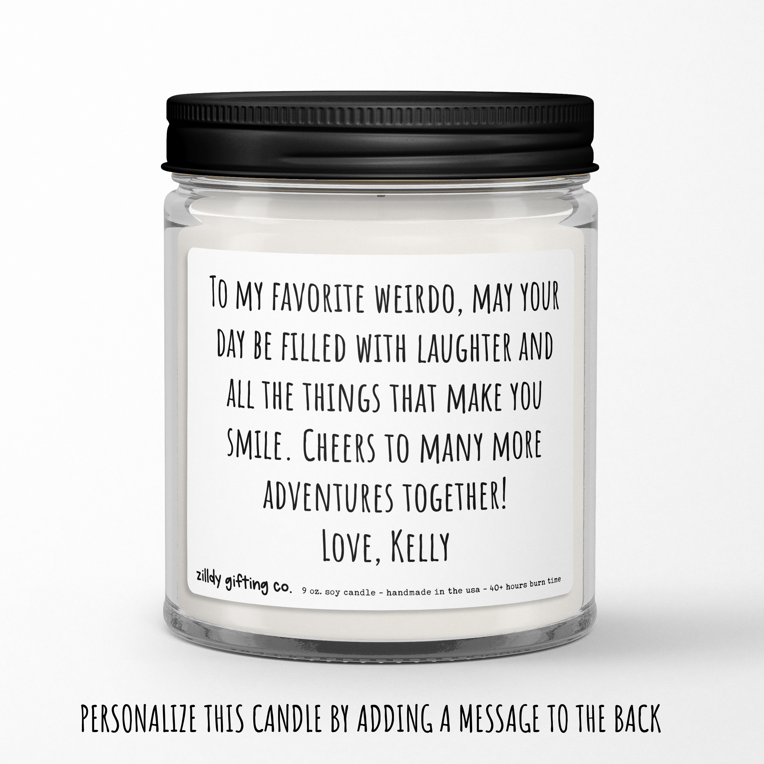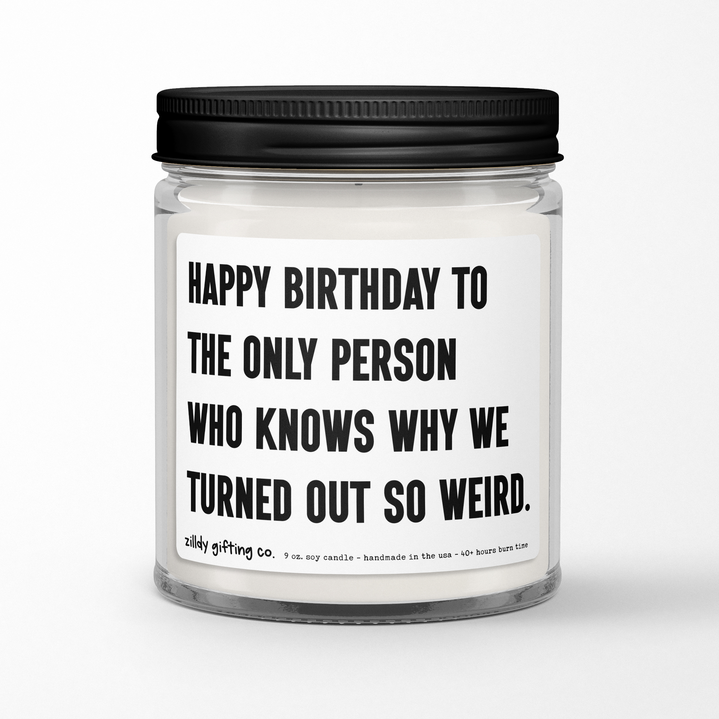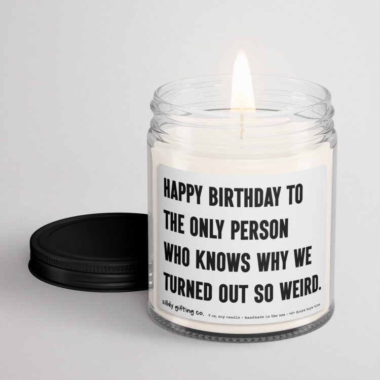 Celebrate their special day with a touch of humor and warmth! Our Handmade Scented Soy Candle features the playful phrase, “Happy Birthday to the only person who knows why we turned out so weird.” This candle is the perfect gift for that one person who shares all your inside jokes and knows all your quirks. Made from 100% natural soy wax, it offers a clean burn and delightful fragrance, creating a cozy atmosphere for birthday celebrations.
