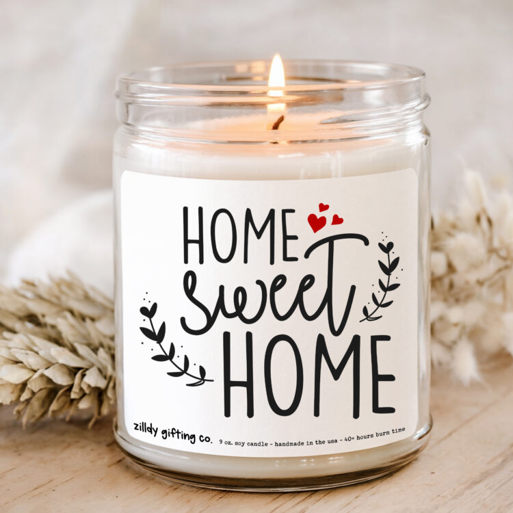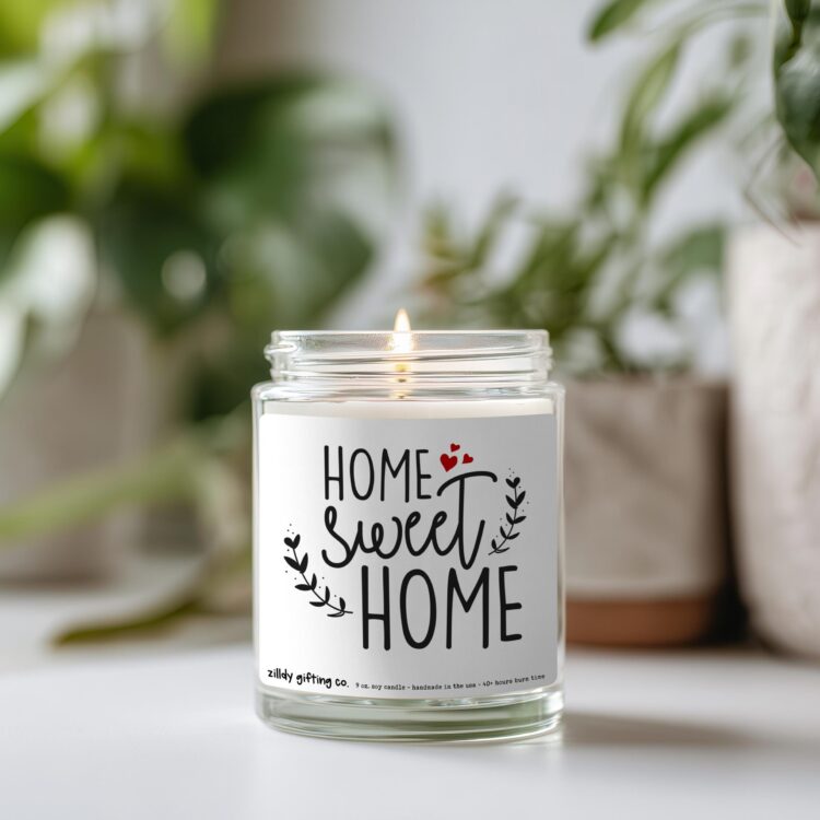 Home Sweet Home with Hearts Personalized Soy Candle and Succulent Gift