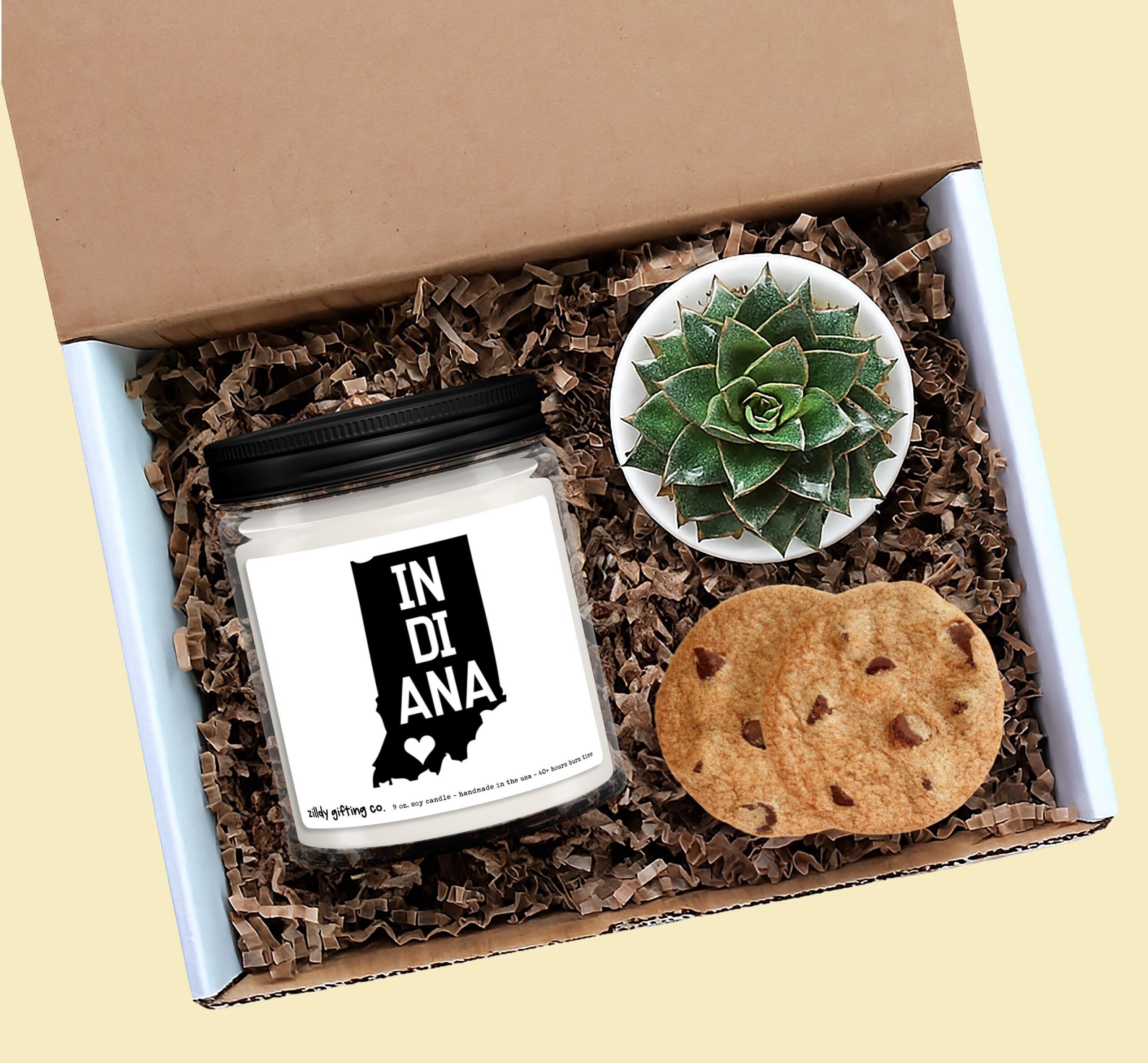 Add optional spa-style extras like a bath bomb or sugar scrub to elevate your gift into a full relaxation experience. This box combines home, comfort, and handmade quality in one meaningful package. Whether you’re sending love from Indiana or reminding someone of their roots, this candle gift box is the perfect way to brighten their day.