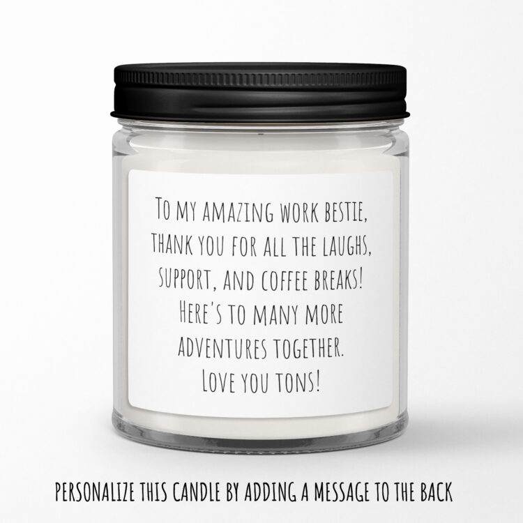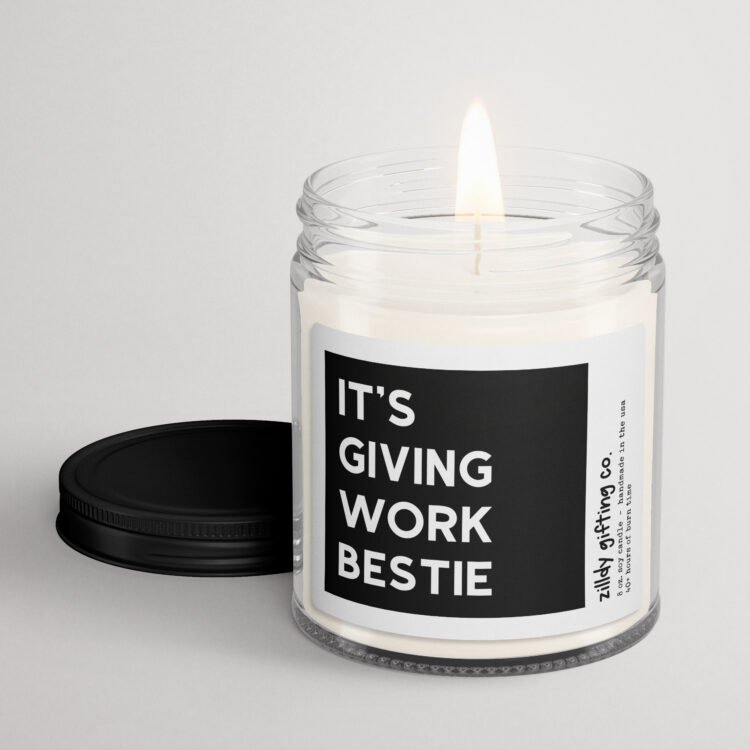 Celebrate your favorite coworker with our delightful Handmade Scented Soy Candle! This candle features the playful phrase “It’s Giving Work Bestie,” making it the perfect gift for your work bestie, who makes every workday brighter. Crafted from 100% natural soy wax, it offers a clean burn lasting up to 40 hours, filling your workspace with a warm and inviting aroma.