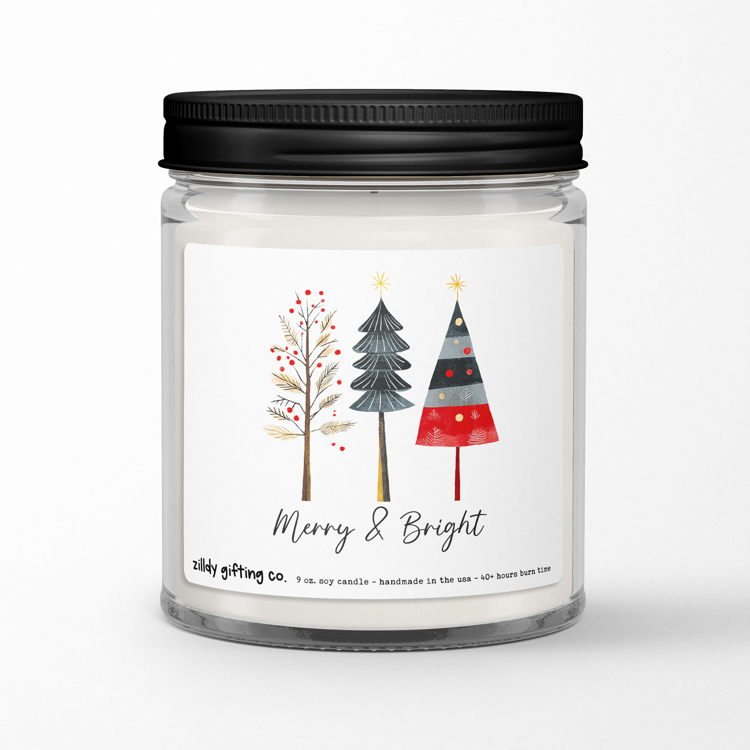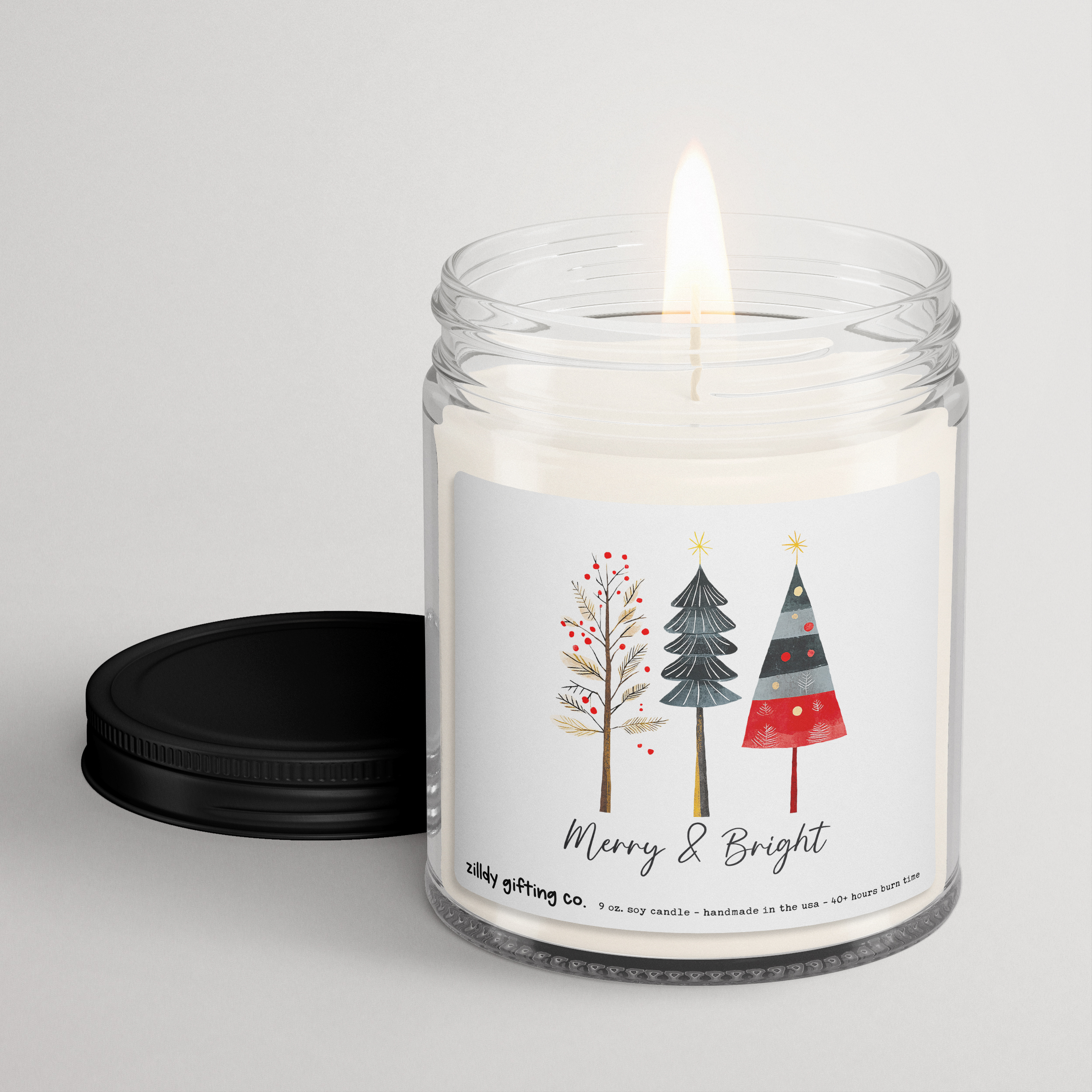 - 9-ounce hand-poured soy candle with the artwork shown
