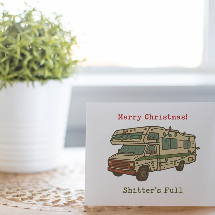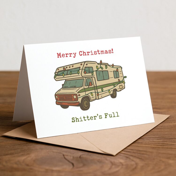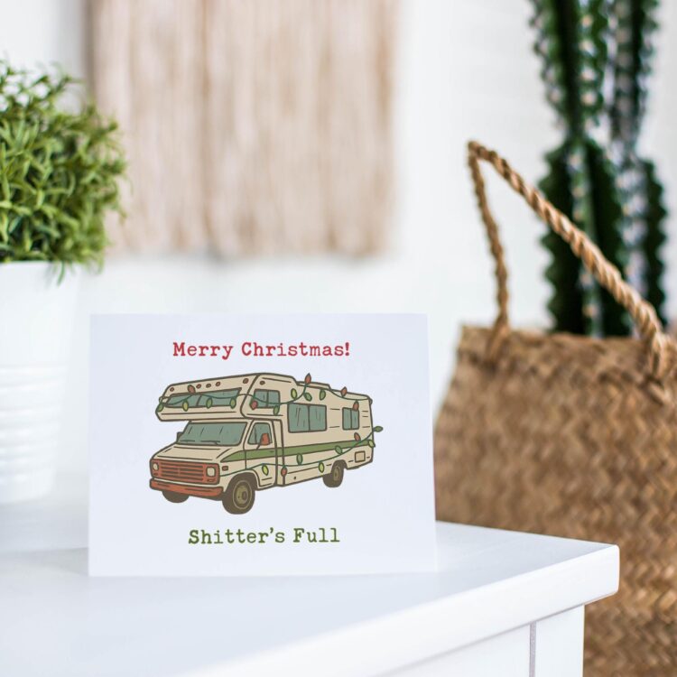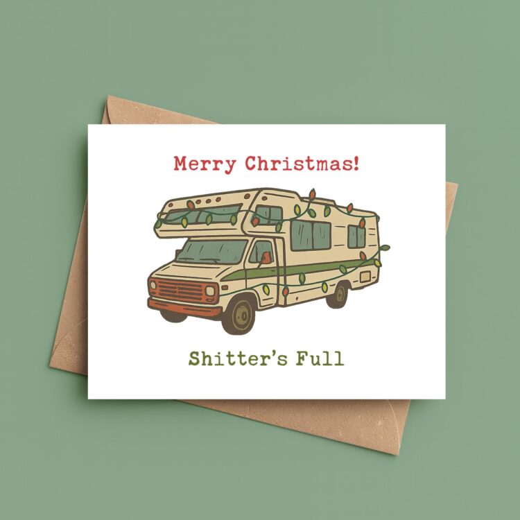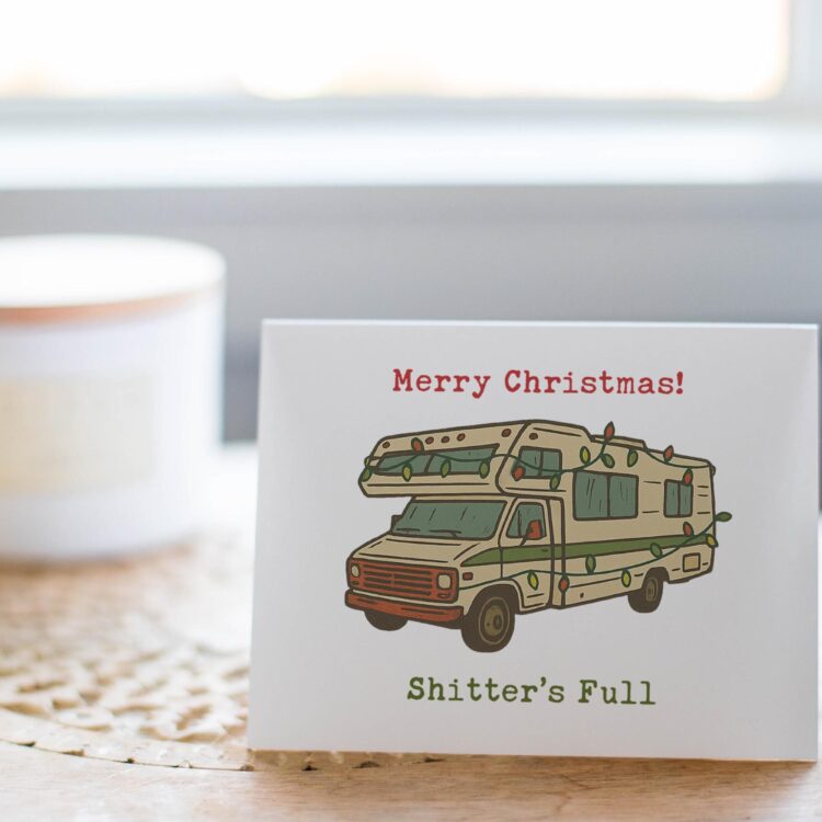 Celebrate the cozy season with a touch of festive humor that’s perfect for spreading Christmas joy. This funny holiday greeting card captures the spirit of merry laughs with its cheeky “Shitter’s Full” RV design, making it an awesome gift for anyone who loves a good holiday smile. Handmade with care, it’s a unique way to share some lighthearted cheer during the holidays.