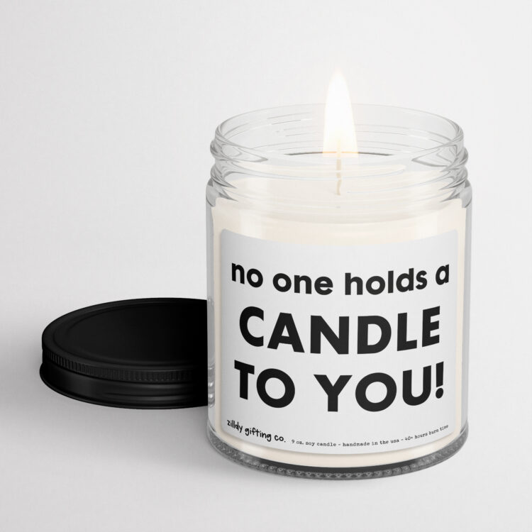 Make someone’s day with the fun and meaningful message of our Handmade Scented Soy Candle! The quote “No One Holds A Candle To You!” is perfect for expressing how unique and wonderful someone is. Whether it’s for a birthday, anniversary, or simply a gesture of appreciation, this candle is crafted from 100% natural soy wax, ensuring a clean, long-lasting burn that lasts up to 50 hours.
