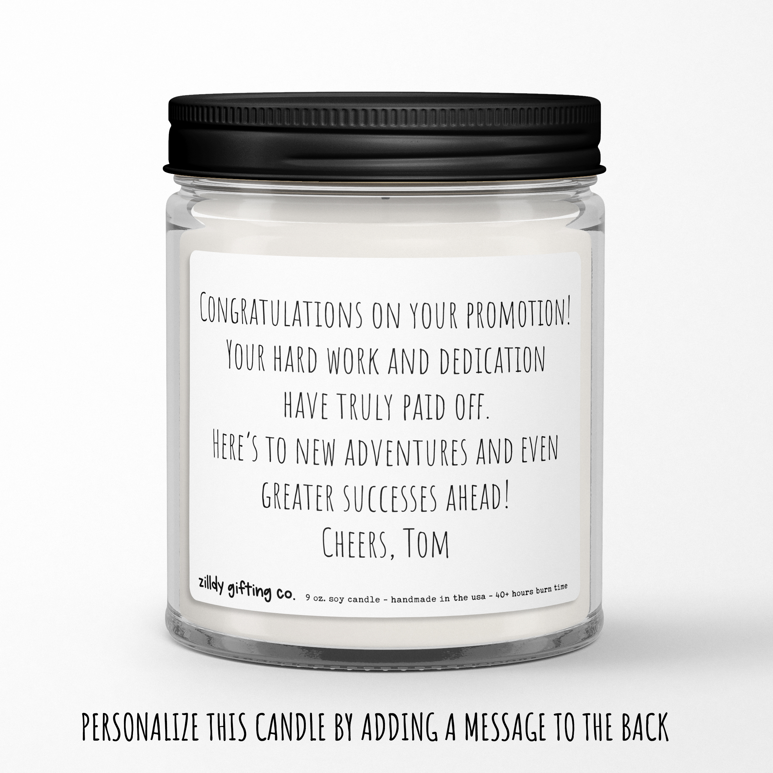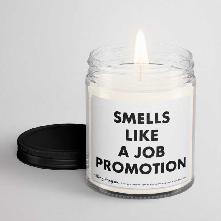 Mark your achievements with a touch of humor using our delightful Handmade Scented Soy Candle! This unique candle displays the fun phrase “Smells Like a Job Promotion,” making it an ideal gift for a coworker or friend who has just received that well-deserved promotion. Made from 100% natural soy wax, it ensures a clean, eco-friendly burn, creating a warm atmosphere for any celebration.