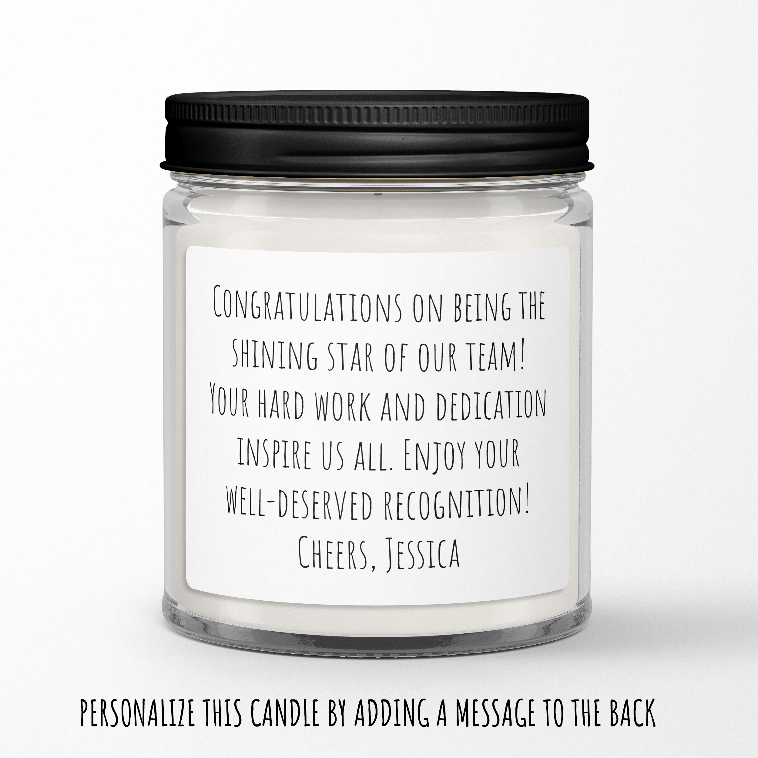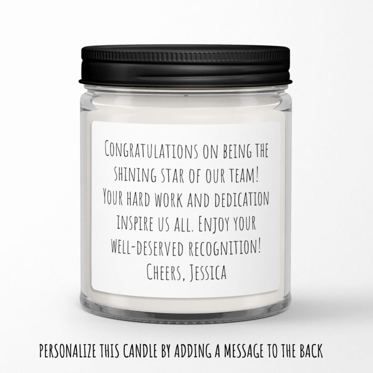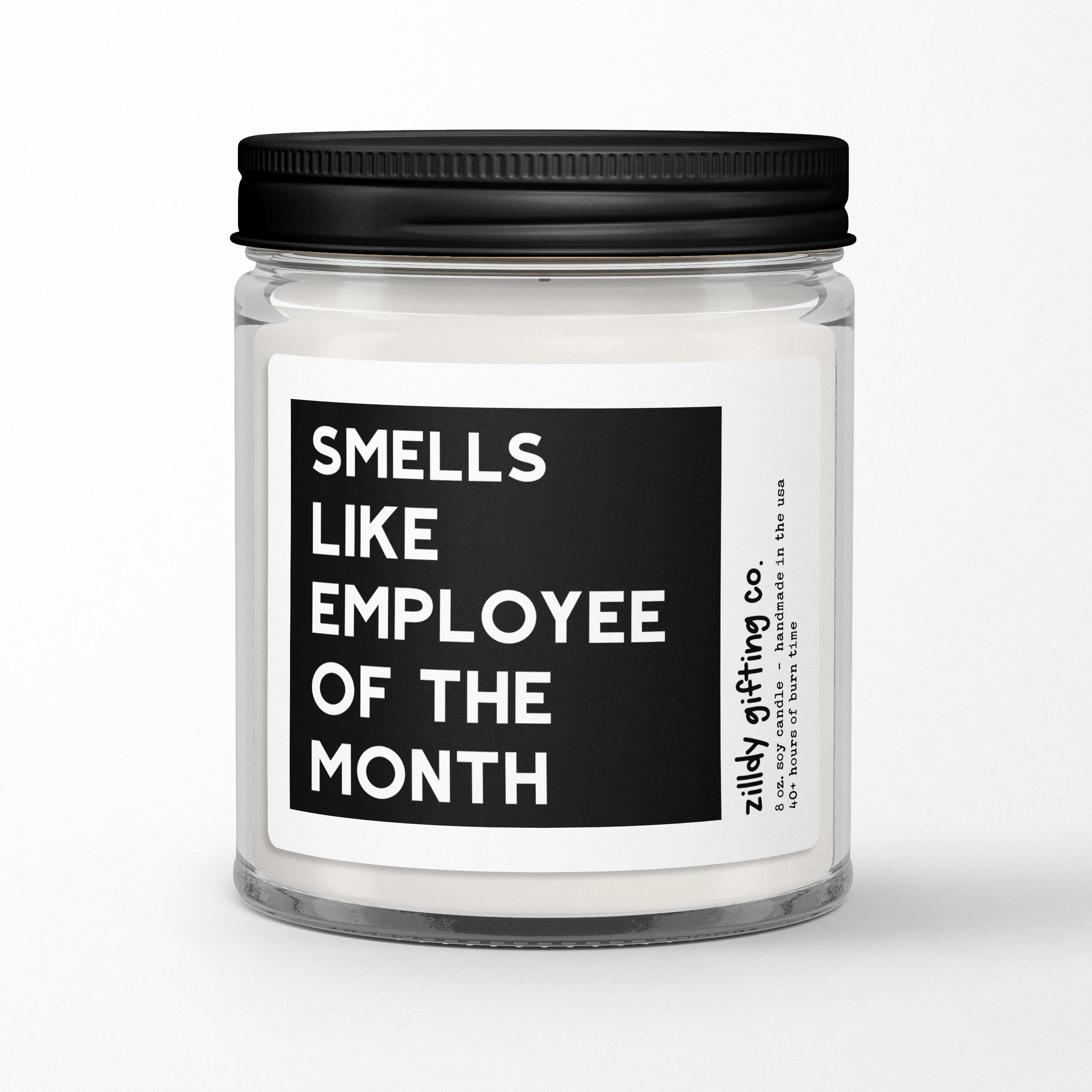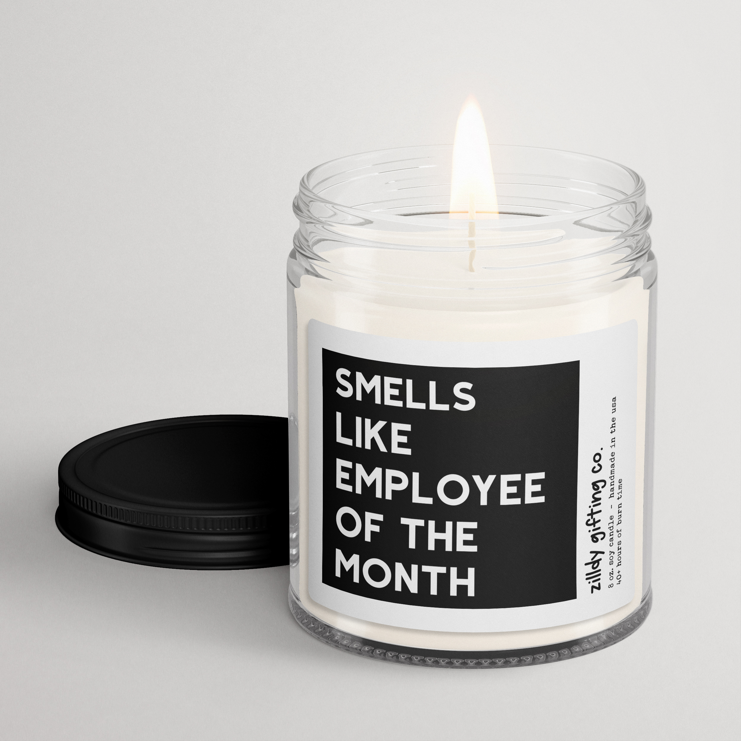 Light up the celebration with our delightful Handmade Scented Soy Candle! This unique candle showcases the playful message “Smells Like Employee of the Month,” making it a fantastic gift for those who shine in the workplace. Crafted from 100% natural soy wax, it guarantees a clean and enjoyable burn while creating a warm atmosphere in your home or office.