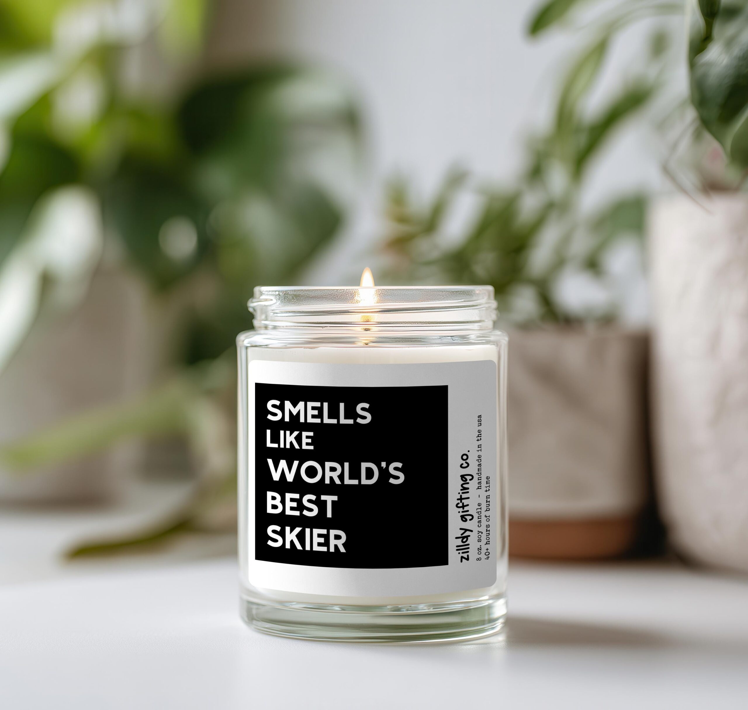 Smells Like World’s Best Skier Personalized Soy Candle and Succulent Gift