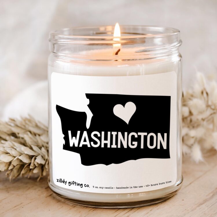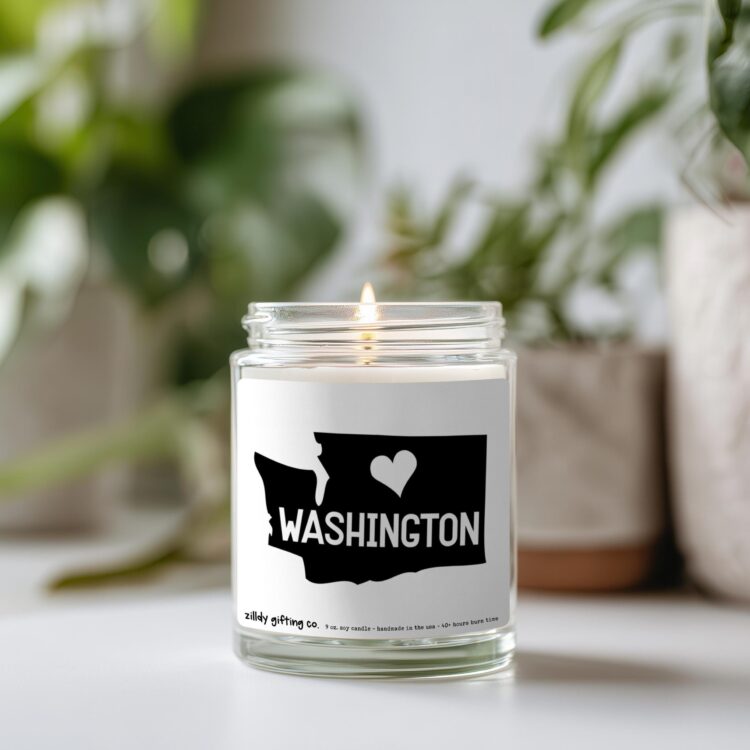 Celebrate someone’s love for Washington with this handmade soy candle gift box. The minimalist black-and-white design features a heart within the state shape, a simple yet meaningful nod to home. Each 9 oz candle is hand-poured with natural soy wax for a clean 40+ hour burn.
